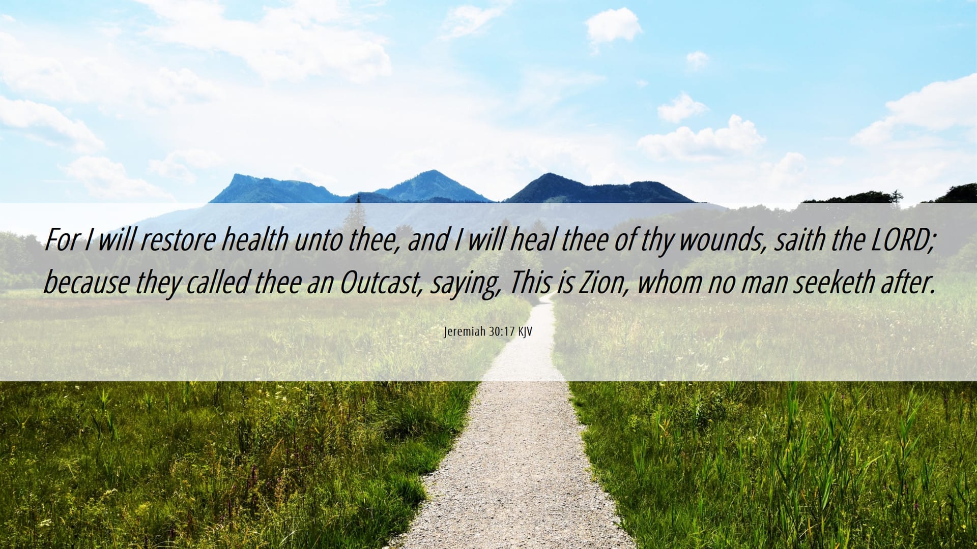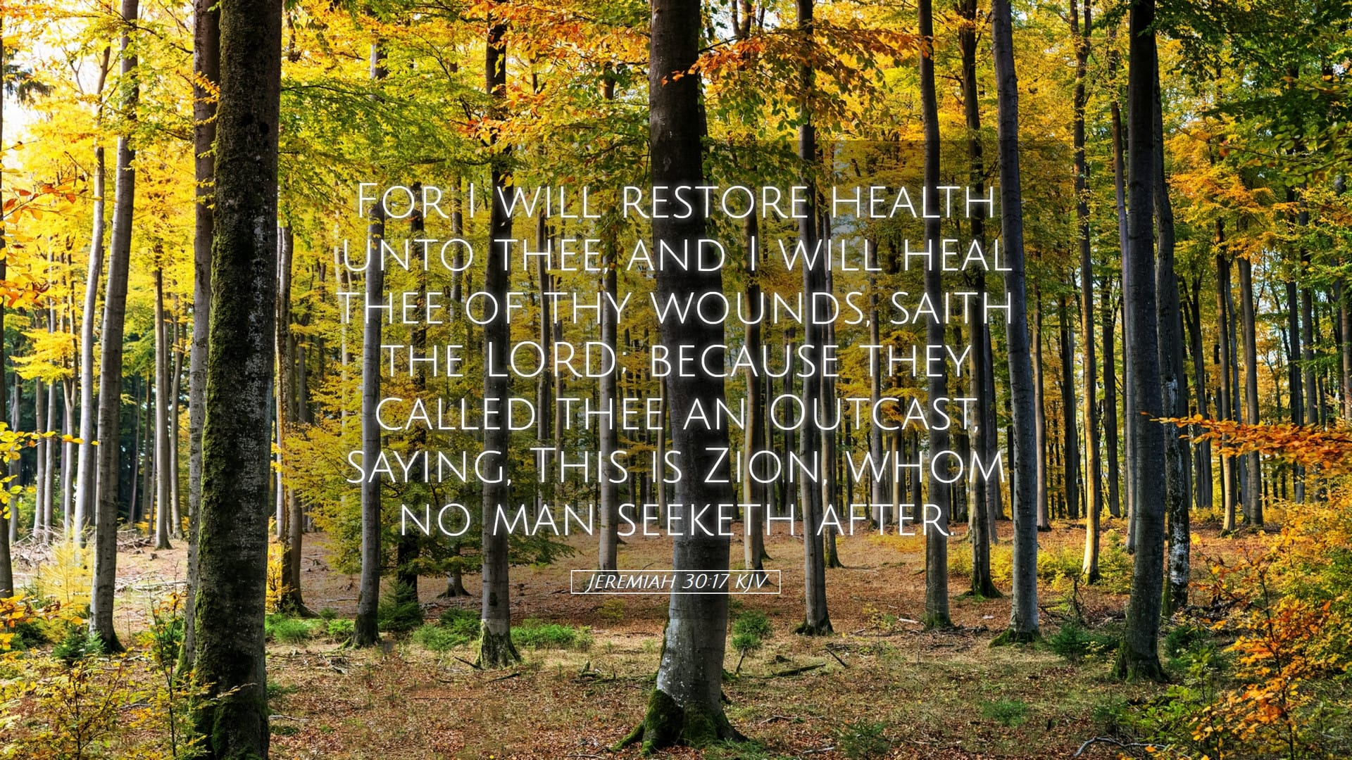 "For I will restore health unto thee, and I will heal thee of thy wounds, saith the LORD; because they called thee an Outcast, saying, This is Zion, whom no man seeketh after."